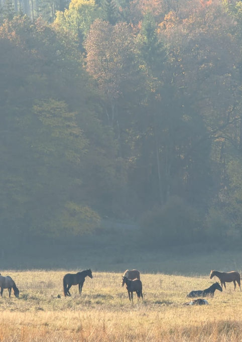 In der hügeligen Mittelgebirgslandschaft Nordhessens bieten wir seit 2017 die ganzjährige, artgerechte Aufzucht junger Hengste an.