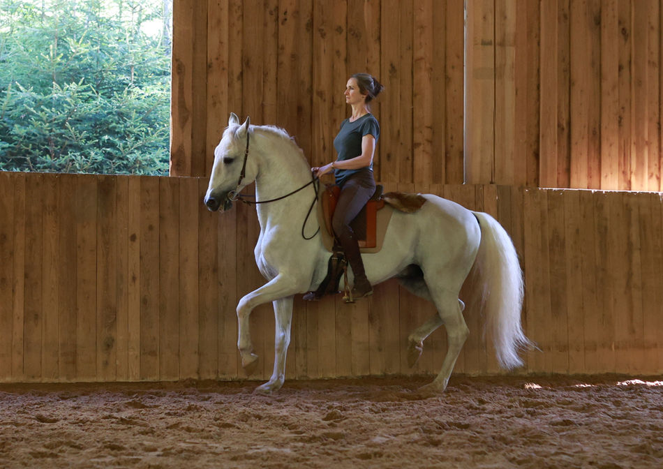 Unter dem Sattel wird das Pferd weiter ausgebildet, wenn es im besseren Gleichgewicht ist und eine gute Vorstellung von dem hat, was man ihm abverlangt.