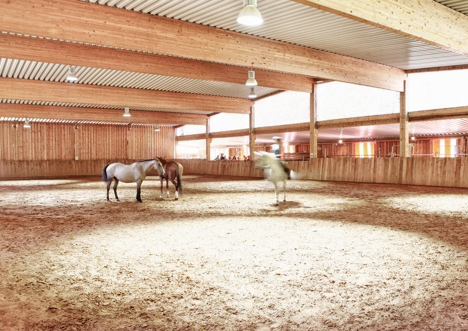 Die große Liegehalle ist mit staubfreiem Material eingestreut - frische Luft garantiert!